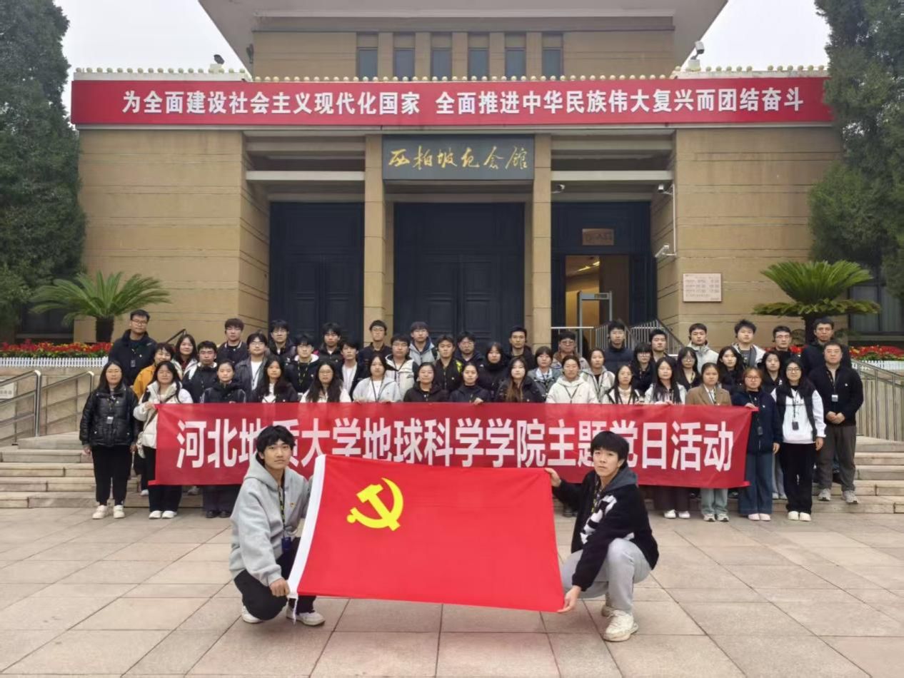 师生们首先来到西柏坡旧址,在中央旧址的土坯房前,大家聆听讲解,感受老一辈革命家在艰苦环境中为国家命运日夜操劳的精神。学生党支部书记张建欣以此为契机,结合旧址的历史背景,深入浅出地阐述了西柏坡精神的时代价值,鼓励大家以实际行动践行初心使命。随后,全体党员重温入党誓词,大家深受感染,纷纷表示要以党员标准严格要求自己,传承西柏坡精神,努力学习科学文化知识,提升专业素养,为推动地质事业的发展贡献自己的力量。