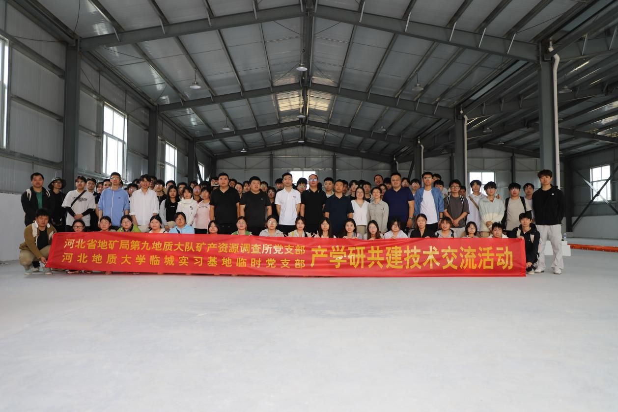 本次活动创新打造“党建+业务”双引擎。学院临城实习基地临时党支部与第九地质大队矿产资源调查所党支部联合发起“产学研共建技术交流”专题活动。双方以党建为纽带,聚焦行业前沿需求与人才培养痛点展开研讨,讨论了:(1)校企资源互通:学院依托企业平台引入一线技术与案例,推动教学内容和行业需求动态接轨;(2)人才共育闭环:企业深度参与培养过程,前置选拔储备优秀地学人才,构建可持续发展通道。