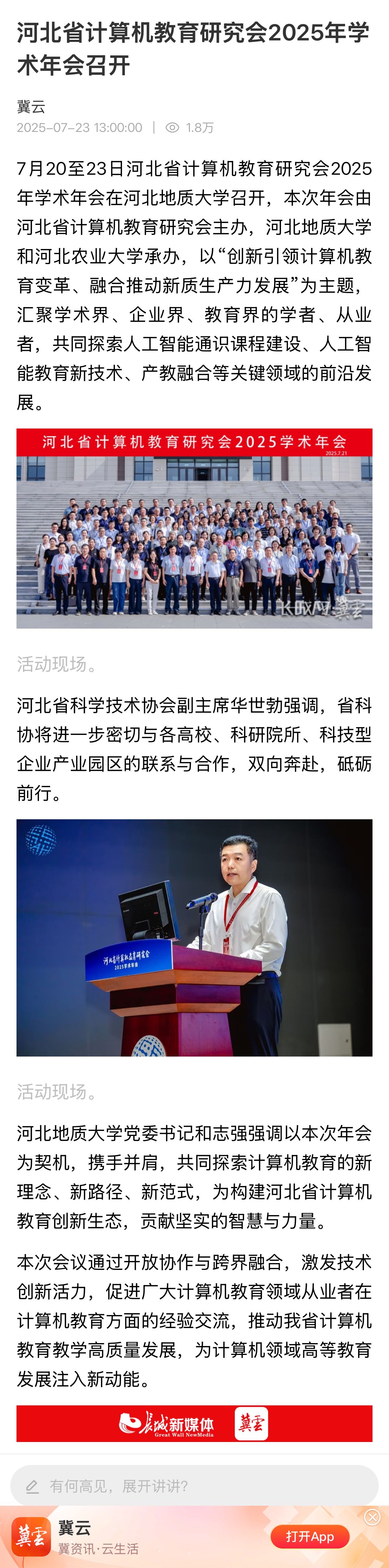 本次会议通过开放协作与跨界融合,激发技术创新活力,促进广大计算机教育领域从业者在计算机教育方面的经验交流,推动我省计算机教育教学高质量发展,为计算机领域高等教育发展注入新动能。