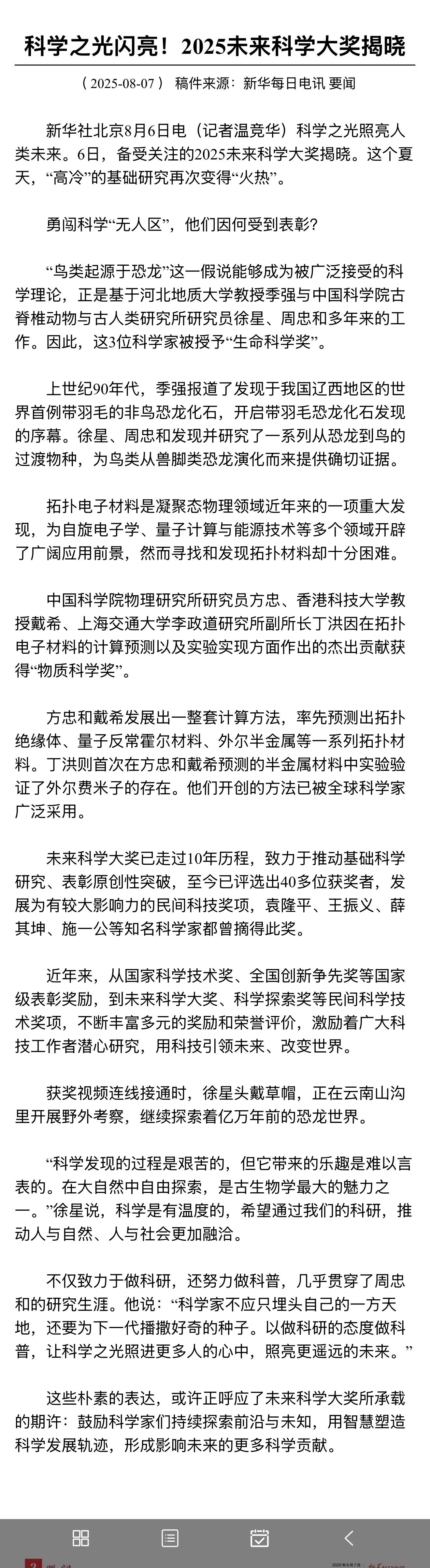 【新华每日电讯】科学之光闪亮!2025未来科学大奖揭晓