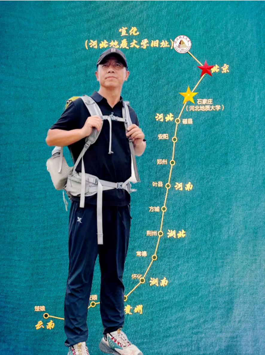 一路上,他因为鞋子不合脚磨出水泡而被迫休整,也有因导航出现偏差从国道走进“茶马古道”的经历。烈日、大雨、狂风……虽然并不容易,但一路却不孤单。他用脚步丈量祖国大地的事情,持续在河北地大校友群、抖音中发酵,唤起了校友内心的情谊,很多素昧平生的不同届的校友接续并肩。