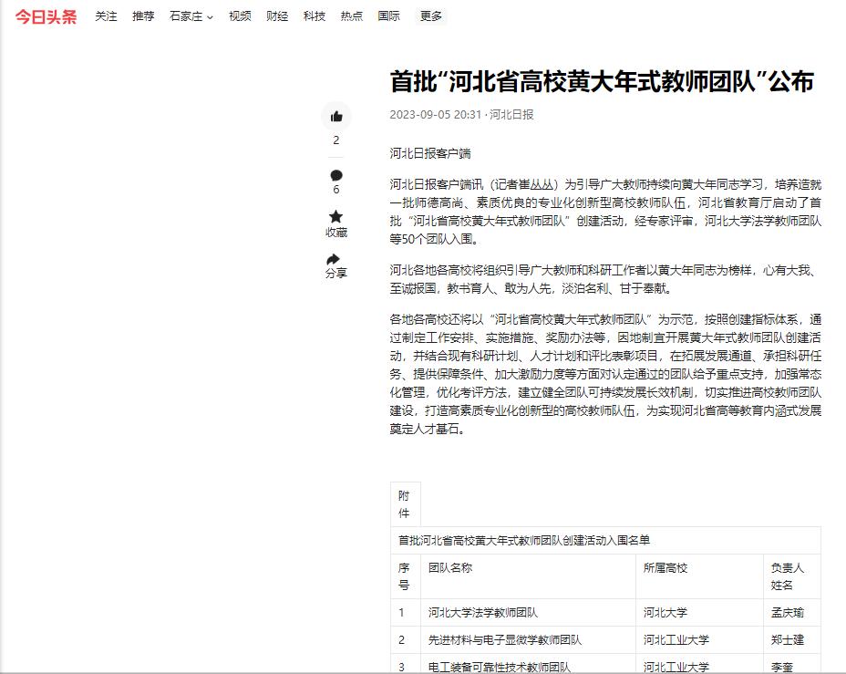【今日头条】首批“河北省高校黄大年式教师团队”公布