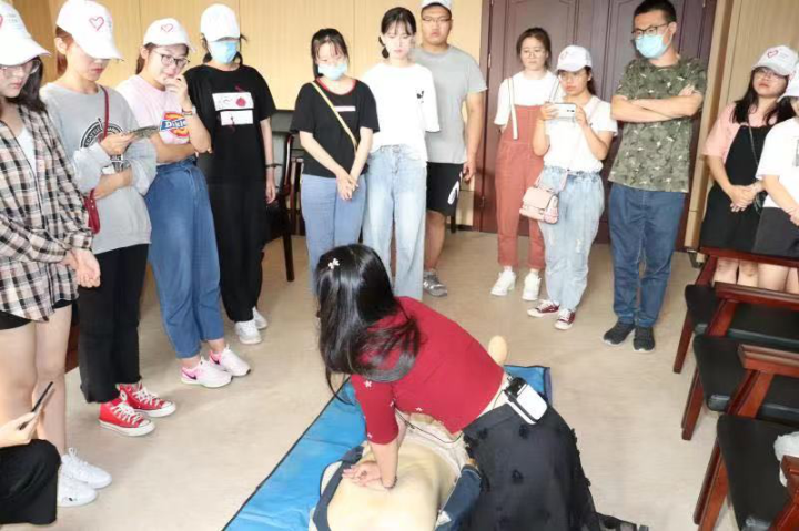 正在为学生们进行应急救援培训的胡冰煜。胡冰煜供图