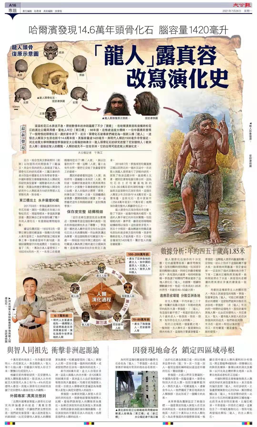 【大公报】哈尔滨发现14.6万年头骨化石 脑容量1420毫升