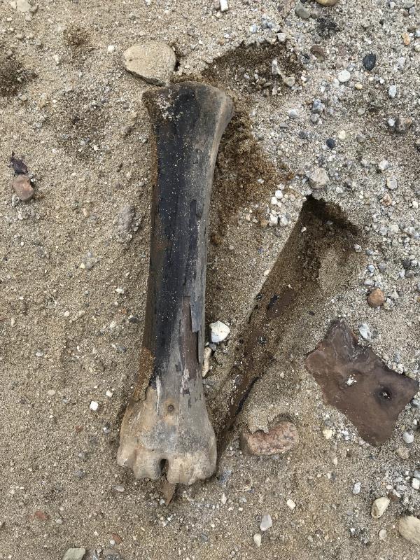 哈尔滨松花江边的哺乳动物化石。(张澍 摄)