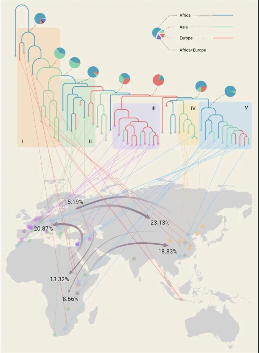 基于新建立的系统演化关系树,研究团队还使用最大似然法进行生物地理学模拟分析。结果显示,更新世古人类可能处于相对隔离的小种群状态、但具备长距离偶然扩散并成为建群种的能力。在非洲、亚洲和欧洲之间,古人类存在多方向的扩散,不仅仅有走出非洲,也存在走入非洲的扩散,研究者称之为“穿梭扩散模型”。这一模型可以更好地解释人属物种或种群的多样性和地理分布状况。
