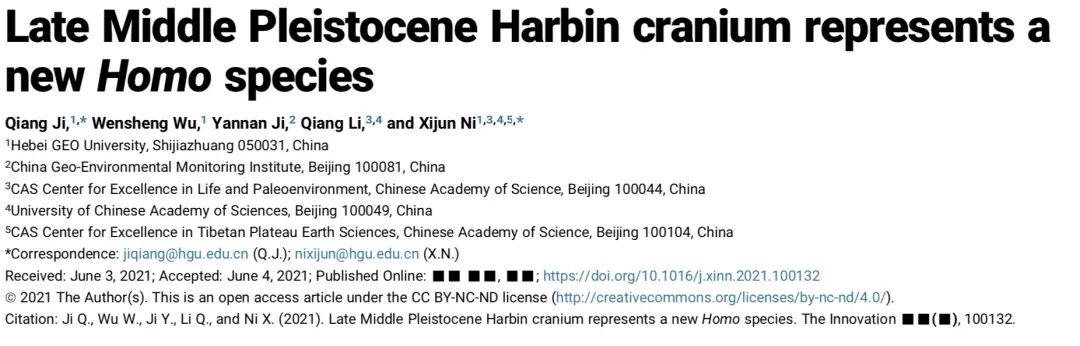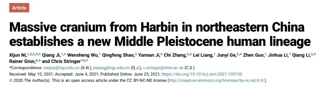 北京时间6月25日晚间,细胞出版社(Cell Press)旗下期刊The Innovation(中国科学院青年创新促进会青年科学家与Cell Press共同创建的综合性英文学术期刊)以封面故事形式同期发表了3篇论文,来自中英澳的研究人员报道了已知的最大人属头骨化石——BB贝博艾弗森官网地球科学博物馆藏有的一块保存近乎完美的古人类化石,即哈尔滨头骨化石。