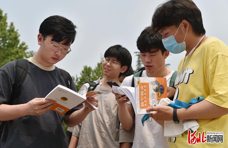 图为活动现场同学们现场翻阅人民防空科普读本。河北日报记者赵海江摄