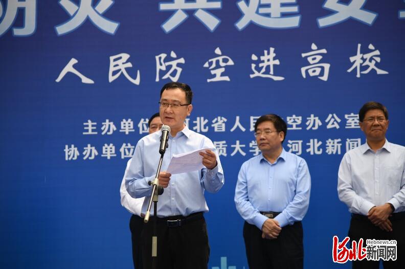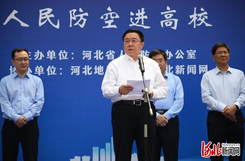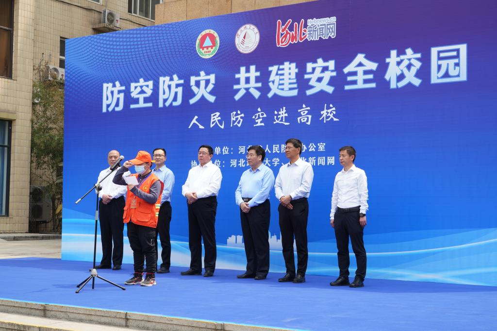 本次活动由省人民防空办公室主办,BB贝博艾弗森官网、河北日报报业集团协办。活动旨在强化防空防灾安全观念、普及国防人防知识、壮大人防志愿者队伍,增强群众自救互救能力。启动仪式现场,省人民防空办公室党组书记、主任郭建英,BB贝博艾弗森官网党委副书记、校长王凤鸣,河北日报报业集团党委委员、副总编辑贾伟分别讲话和致辞。