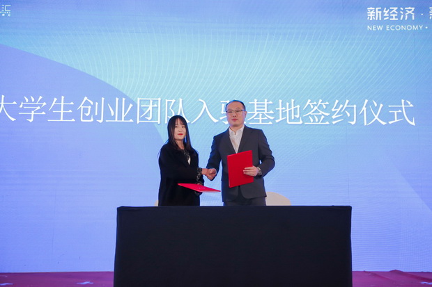学生获奖团队代表与基地签约