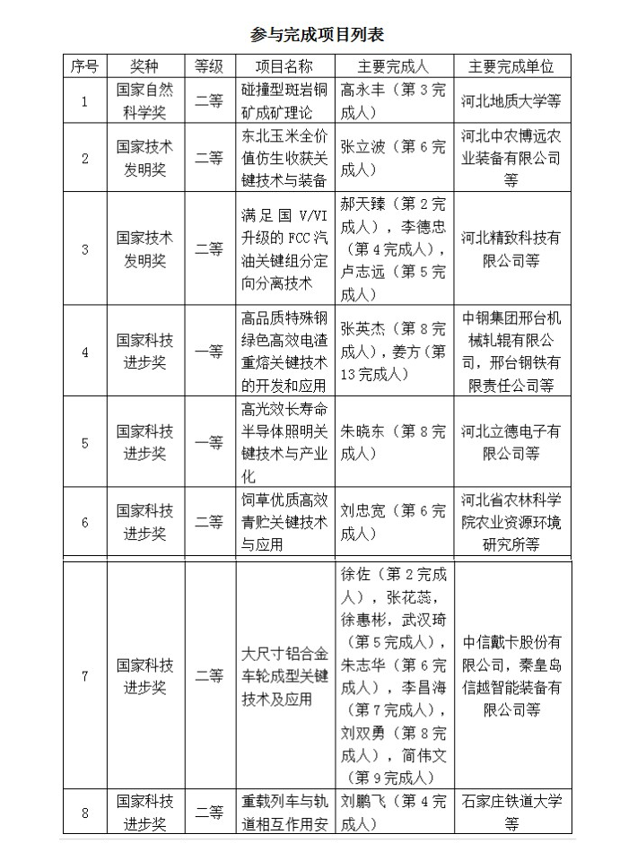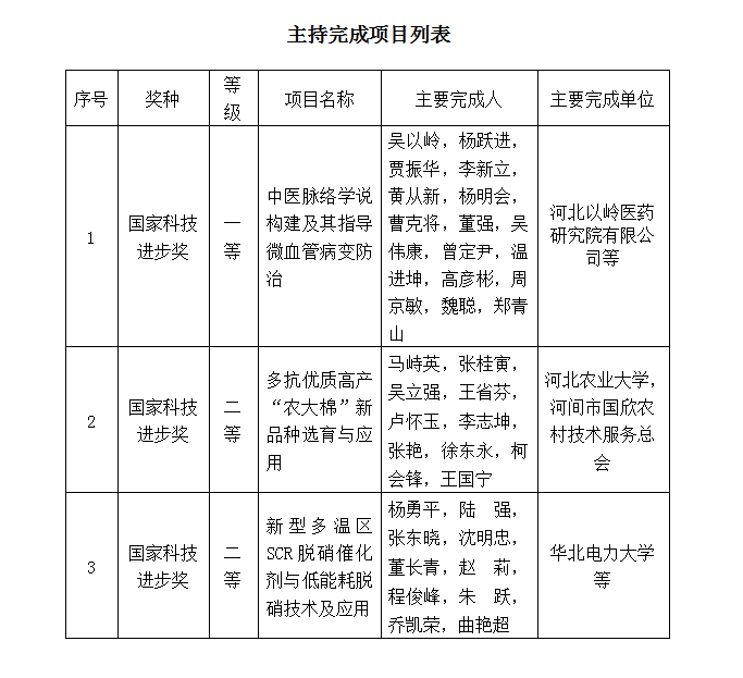 长城网讯(记者 张笑宇)1月10日,国家科学技术奖励大会在北京召开,对获得2019年度国家科学技术奖的项目和人员进行了表彰。据河北省科技厅消息,河北省共有16个项目获得2019年度国家科学技术奖(不含专项项目),其中河北以岭医药研究院吴以岭院士团队主持完成的“中医脉络学说构建及其指导微血管病变防治”项目获国家科技进步一等奖,我省主持完成的项目首次连续两年摘得国家科技进步一等奖。此外,我省还有2项参与项目获国家科技进步奖一等奖,并摘得1项国家自然科学奖二等奖、2项国家技术发明奖二等奖、10项国家科技进步奖二等奖。具体如下: