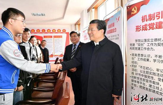 按照党中央部署精神和省委安排,11月13日上午,省委书记、省人大常委会主任王东峰到河北政法职业学院、BB贝博艾弗森官网、河北科技大学宣讲党的十九届四中全会精神。这是王东峰在BB贝博艾弗森官网与勘查技术与工程学院党支部的师生亲切握手。 记者赵威摄