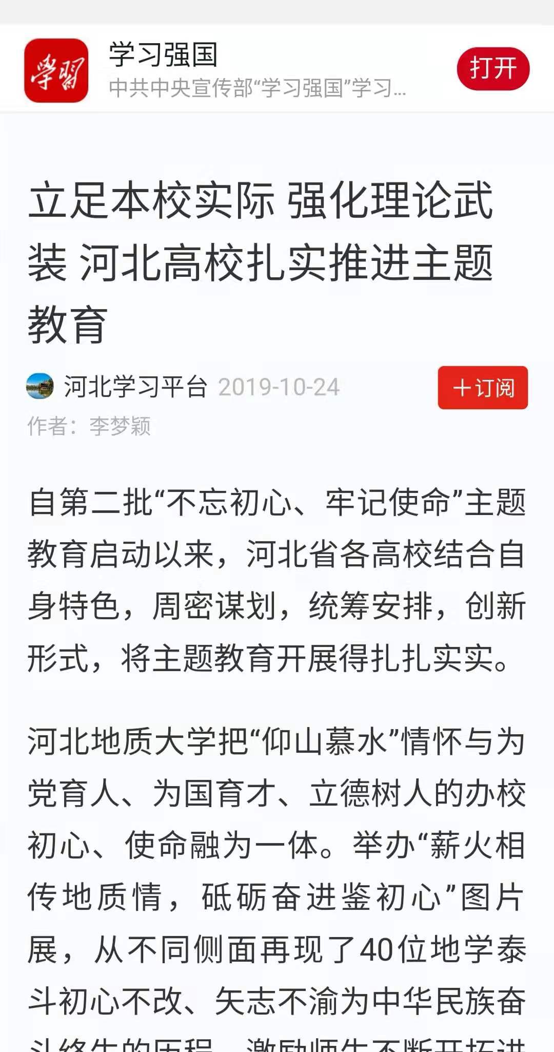 报道在“学习强国平台”刊登