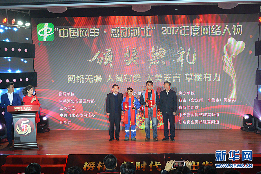 中国网事·感动河北”2017年度网络人物与颁奖嘉宾合影留念。新华网王立鹏 摄