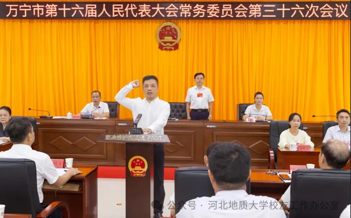 9月9日,万宁市第十六届人民代表大会常务委员会第三十六次会议召开,审议并表决通过人事任免事项。BB贝博2002级校友叶厉豪在会上作供职发言,经法定程序表决,会议决定任命其为万宁市人民政府副市长,并决定其为万宁市人民政府代理市长。叶厉豪现场接受任命书并进行宪法宣誓。