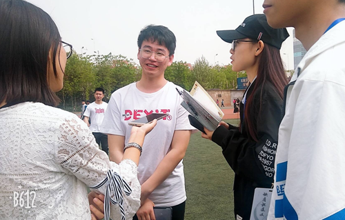 青春的脚步,青春的速度,体现了青春的活力与激情,这些在400米运动员麻志凌的身上可以充分的体现出来。发令枪响,便奋力向前,中途感觉没力气了,可是听到了队友同学的加油呐喊声,便觉得充满力量,坚持不放弃的毅力使他获得了小组第一名的成绩。他想要为学院争光。麻志凌平时最喜欢的运动是打篮球,为了运动会,他晚上有时间就会在操场上练习,起跑冲刺,正是这种努力让他能够取得了骄人的成绩。言语间都能感受到这个男孩的谦虚,他说自己的竞争对手们表现的都特别棒,自己能取得这个成绩甚至有一些运气在里边。诚然,运动竞赛可能有三分偶然,一分幸运,但剩下的六分还得靠自己的努力与拼搏。终点时刻,队友的等待让这个男孩心里充满了喜悦,满满的青春能量洋溢飘洒在赛场上。踏上跑道是一种选择;离开起点是一种勇气;驰骋赛场,是一种胜利。即是是炎热的气息,也无法挡住破竹的锐气。