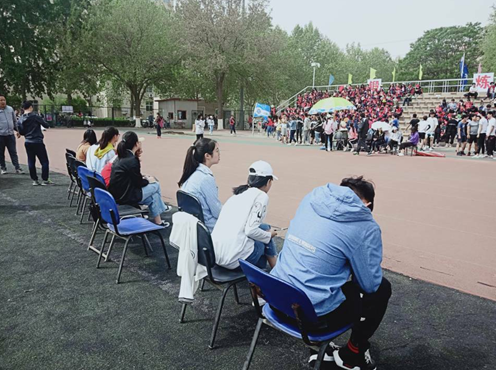 本次运动会设计了15个比赛项目,竞赛项目分为教职工组与学生组,每个项目的计分方式也不尽相同,这为裁判组的工作增加了不少难度。本次裁判工作由老师带队,学生配合老师工作,各司其职,任务分工相当明确。以田径为例,各个赛道有专门的计时员,选手冲到终点时,计时员将成绩上报给老师,由老师记录在册。为了确保比赛的公正性,裁判组还配有检查员,实时观测选手行为,防范违规作弊行为。在运动会期间,记者们有幸采访到了一些裁判员,发现他们不仅热情高涨,裁判工作也做得相当认真。他们严谨认真的工作态度感染着运动场上的每一个人,这对于运动员来说也是一种无声的鼓励。裁判员希望每位运动员都发挥出最完美真实的成绩,也希望自己的判决能够公平公正公开,给运动员们,观众们,领导们一个满意的答复。在100米赛跑比赛中,赛场上各个裁判员之间配合默契,手上的发令旗和发令枪一放一响,记录台的裁判员们精准的记录着比赛的分秒,等待着运动员最后冲线。在运动员撞线的那一刻,观众席上发出了激烈的欢呼声。每个人都为运动健儿们拼搏的精神所感动,裁判员也衷心的为选手们所取得的好成绩而感到高兴。