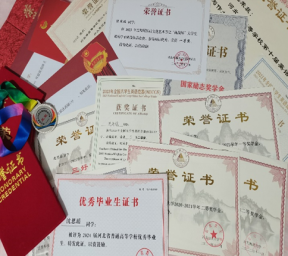 省级优秀毕业生,荣获2022-2023年国家励志奖学金、“全国大学生英语竞赛”二等奖、“挑战杯”河北省大学生课外学术科技作品竞赛省级二等奖、“国际人才英语考试”中级合格证书、“外研社·国才杯”全国英语写作大赛省三等奖、“外教社·词达人杯”全国大学生英语词汇能力大赛省三等奖、优秀团干部、优秀学生、一等奖学金、连续两年获“三好学生”称号、校大学生记者团“优秀学生记者”称号等。