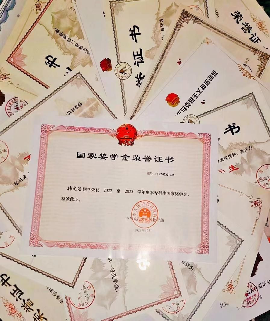 勤学善思,做学习路上的有心人。谈及平衡学习与课余生活,韩文浩引用了古人的智慧:“志不强者智不达,言不信者行不果。”学习是学生的天职,但课余生活同样重要。韩文浩善于制定学习计划和工作安排,确保两者相得益彰,互不干扰。展望未来,他表示将继续深造,追求更高的学术成就,考取一所双一流学校的研究生。“路漫漫其修远兮,吾将上下而求索。”面对崭新的未来,韩文浩锚定既定奋斗目标,意气风发,坚定前行。而对于同样追求优秀的同学们,他提出了既要脚踏实地,同时也要积极参与组织工作,锻炼各方面能力的建议。