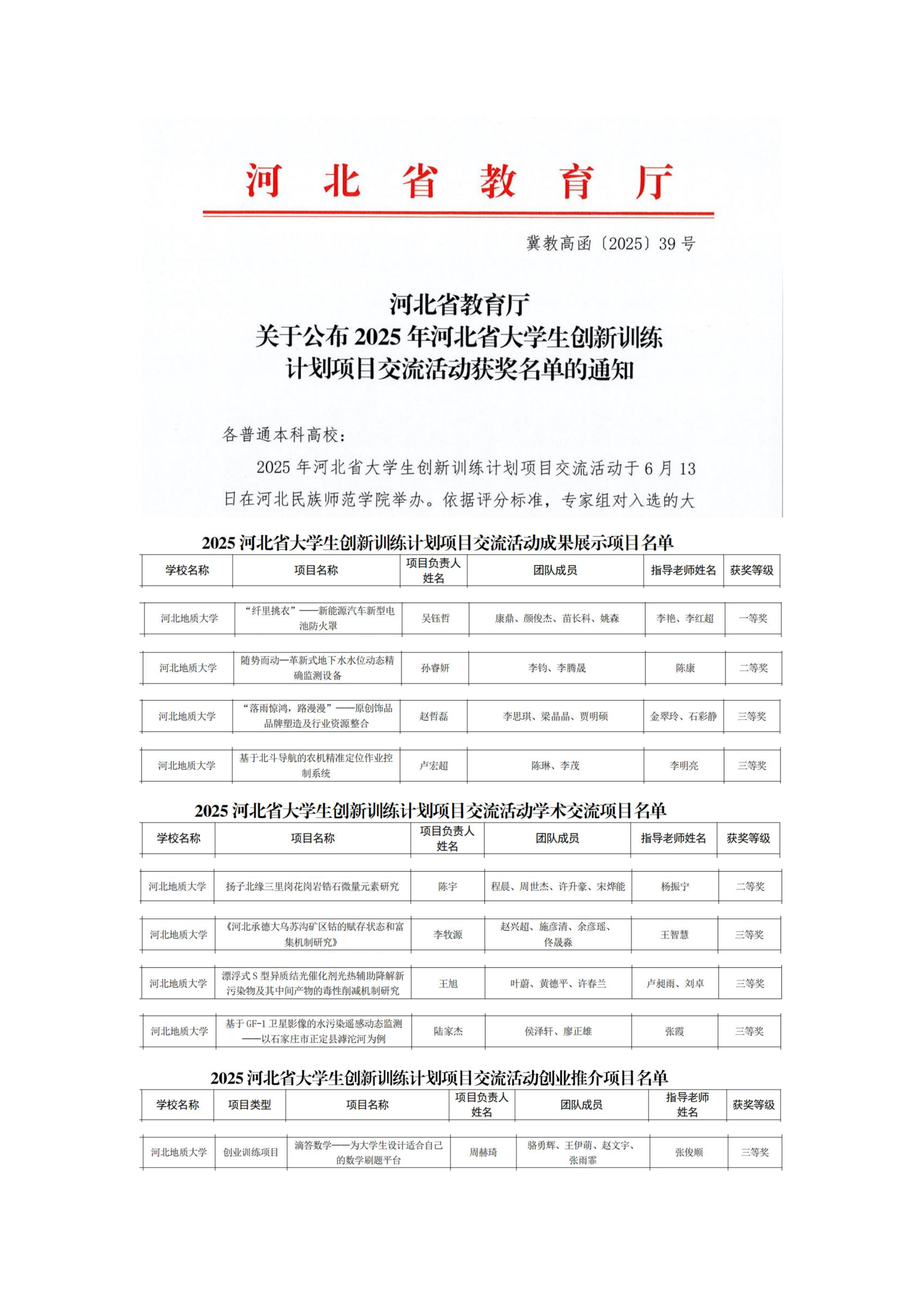 近日,河北省教育厅公布2025河北省大学生创新训练计划项目交流活动获奖名单。BB贝博入选现场赛的9个项目,获一等奖1项,二等奖2项,三等奖6项,最佳创意项目1项。