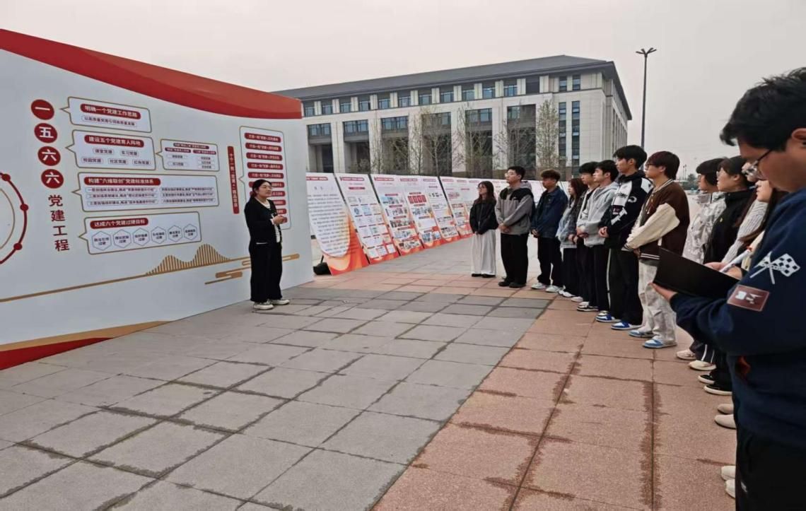 为深入学习贯彻习近平总书记关于红色文化传承的重要论述,扎实推进党员理想信念教育与思想建设工作,10月16日下午,水资源与环境学院党委副书记张丽娜、学生党支部书记姜晓雪带队,组织学生党员前往慕水广场,参观“红耀双地”主题党建成果展板。