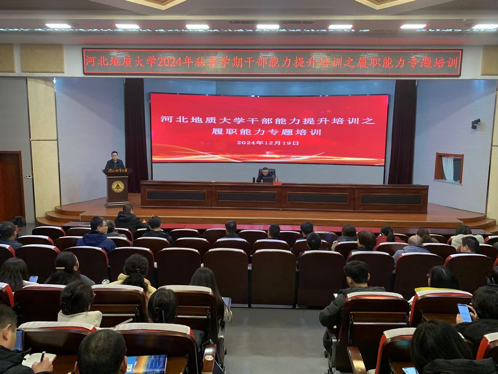 12月19日,BB贝博在春秋讲堂举办秋季学期干部能力提升培训之履职能力专题培训。此次培训邀请了河北省审计厅行政事业审计一处处长、一级调研员李曙光处长进行专题讲座,旨在加深BB贝博干部对审计工作的理解,提升干部在日常工作中的防范风险的能力及管理水平。讲座由审计处处长焦董瑞主持,全体中层干部,管理、教辅单位的科级干部参加了培训。