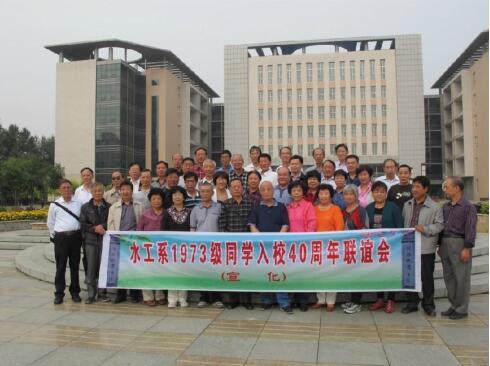 2013年9月水工系1973级同学自发在宣化庆祝入校40周年和学校成立60周年,返回母校聚会,达到当年同学数目的一半,匡又为老师也参加了。