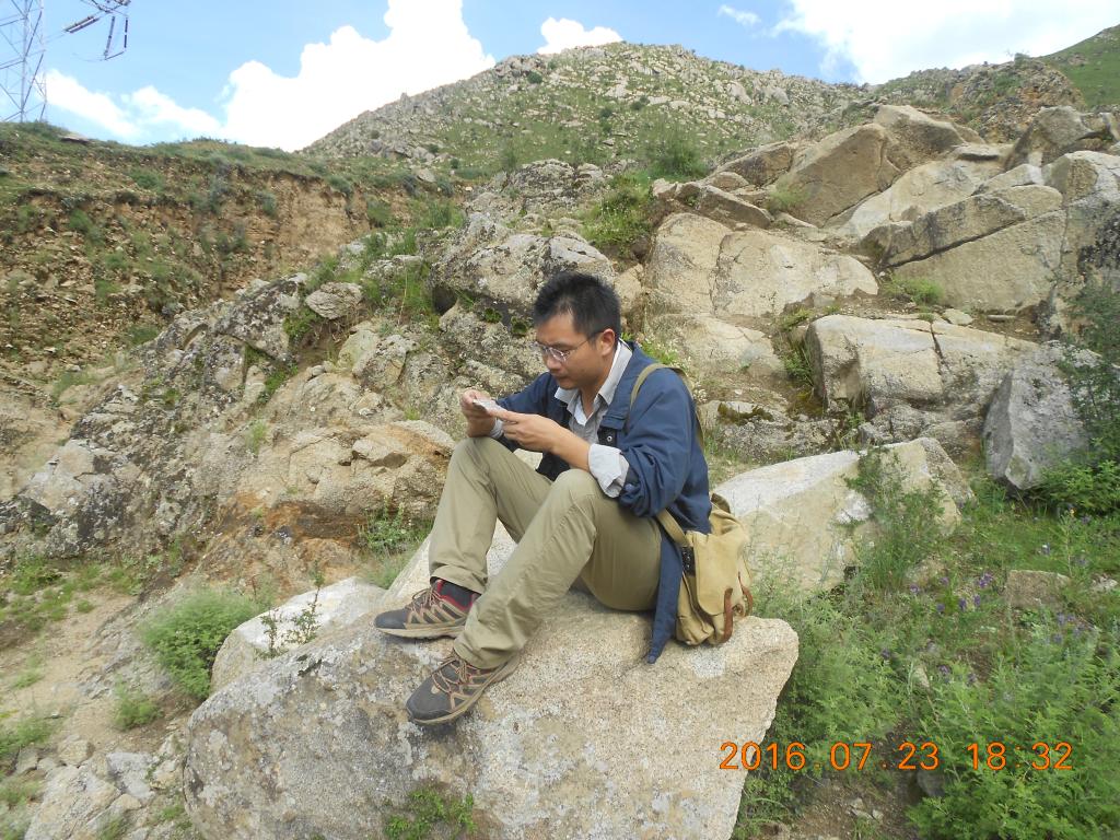 2016年暑假,在青藏高原川藏铁路沿线进行遥感地质解译工作中,陈超第一次进入高原地区工作,亲身体验了一回高原反应。按照项目要求,自己主要负责在野外辨认出各地质体之间的界线。虽然不同岩性在遥感影响图片上大多可以通过一定颜色、花纹差异等特征来辨认,但是陈超每次都尽力到实地验证。当项目组观察完拉萨地区的一条河流阶地,沿着河岸前行,下一步正要验证对面山坡出露的大块岩体岩性。由于高原反应,陈超突感不适、鼻血直流,大家建议进行原地止血、休整、折返。陈超深知野外调研不能半途而废,更不能因为自己耽误项目进程,硬是在鼻血半止半流的状态下爬到了山体半山腰亲验岩体岩性,并取回标本,才愉悦地下山了,全然忘却了身体的不适。